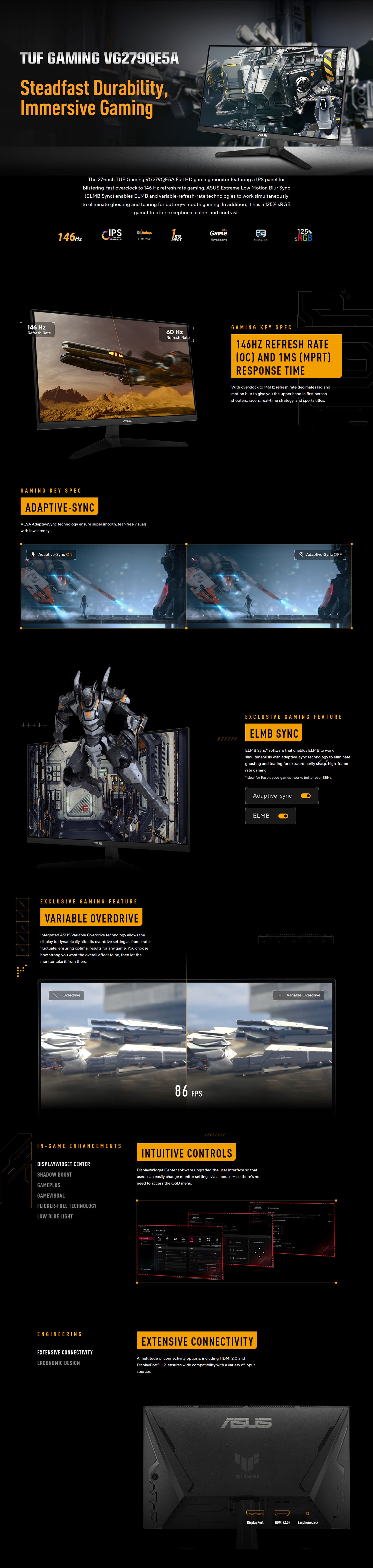ASUS TUF Gaming VG279QE5A Gaming Monitor - 27" FHD IPS OC146Hz