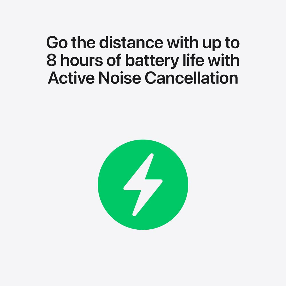 · EXTENDED BATTERY LIFE — Get up to 8 hours of listening time with Active Noise Cancellation on a single charge.10 Or up to 10 hours in Transparency using the Hearing Aid feature.11